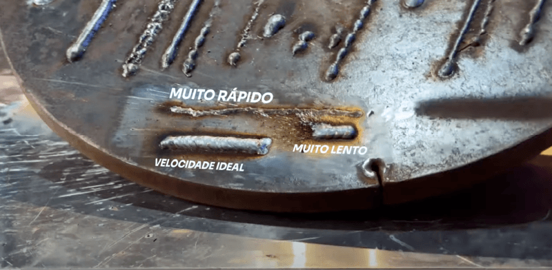 O segredo para bons cordões de solda MIG/MAG é manter uma velocidade que não seja nem tão alta nem tão baixa – um ritmo constante é o ideal, e quanto mais você treinar, melhor vai ficar. Assista vídeos no YouTube e teste diferentes velocidades antes de começar a soldar de fato.