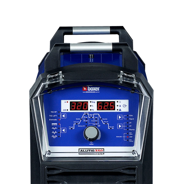 A ALUTIG 350 AC/DC é uma inversora de solda industrial potente e resistente, ideal para soldas pesadas de alumínio no processo TIG. Possui mais de 10 configurações personalizáveis e utiliza tecnologia inversora com menor consumo de energia. Oferece saída de Corrente Contínua (CC/DC) e Corrente Alternada (CA/AC), permitindo soldar materiais não-ferrosos e ferrosos.