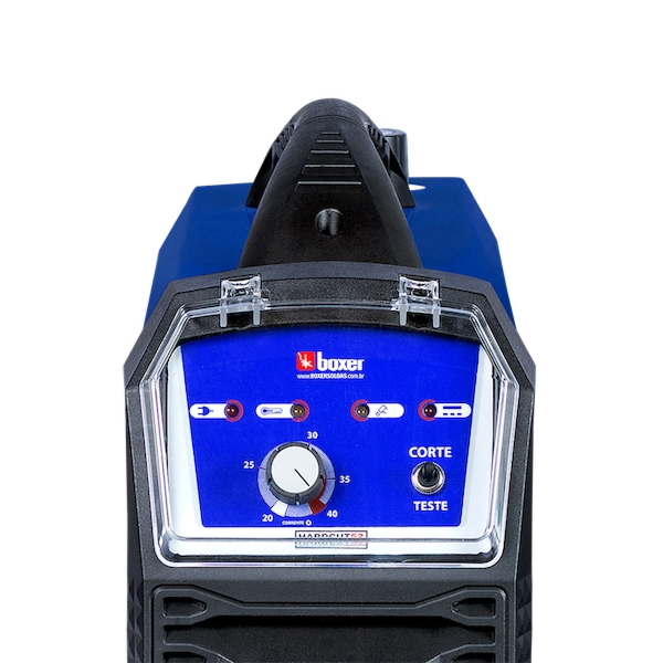 Possui um ciclo de trabalho eficiente, permitindo cortes contínuos de até 32 Amperes, alcançando um máximo de 50 Amperes. É uma máquina de Corrente Contínua (CC/DC) e Corrente Constante, com ajuste de corrente pelo operador.