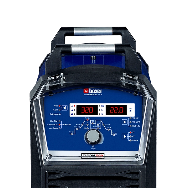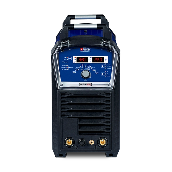 Além do processo TIG, também pode ser utilizada com Eletrodo Revestido. Com capacidade de soldagem de até 320 Amperes, a máquina possui recursos como ajuste de pré-gás e pós-gás, rampa de subida e descida, e modo TIG HF Pulsado para controlar a frequência de pulso. É um equipamento semi-portátil, pesando 23.5KG e conta com alça para transporte.